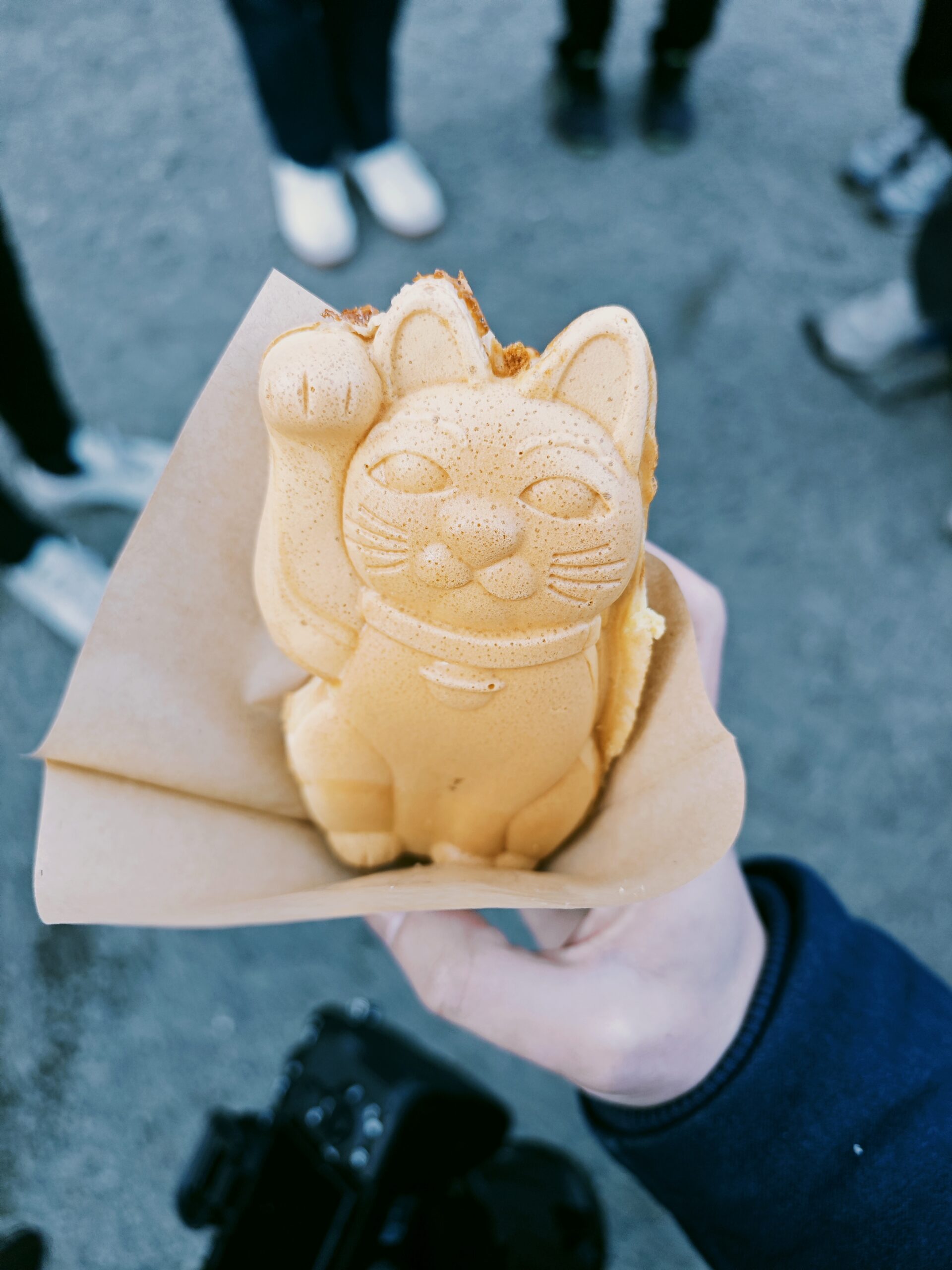 お参りをしたり、猫の形をした屋台のお菓子を買って食べたり、おみくじを引いたりと、お正月らしい時間を過ごしました。